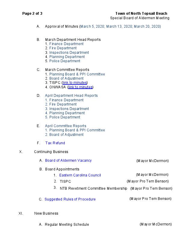 Discussion of the ban on Weekly Rentals due to Covid-19 will occur. A decision likely will be made as to extending or removing the ban that is scheduled to expire May 8.